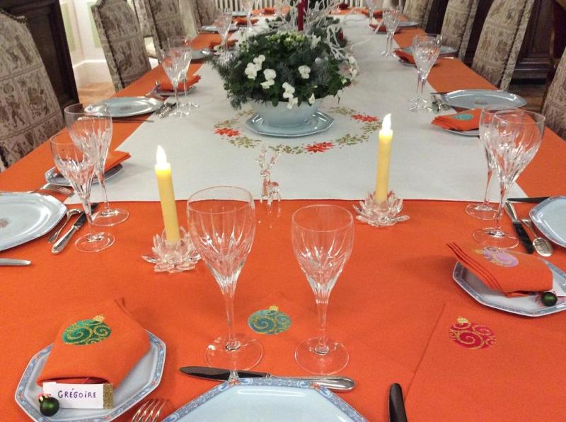 Nappe orange brodée pour Noël