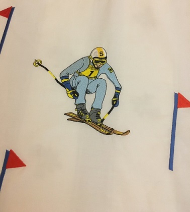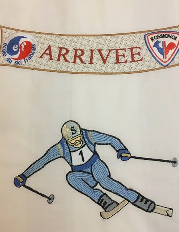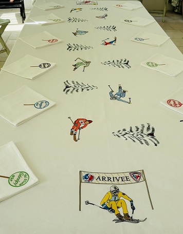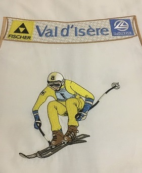 Une piste de Val d’Isère bodée de slieurs, de sapins enneigés